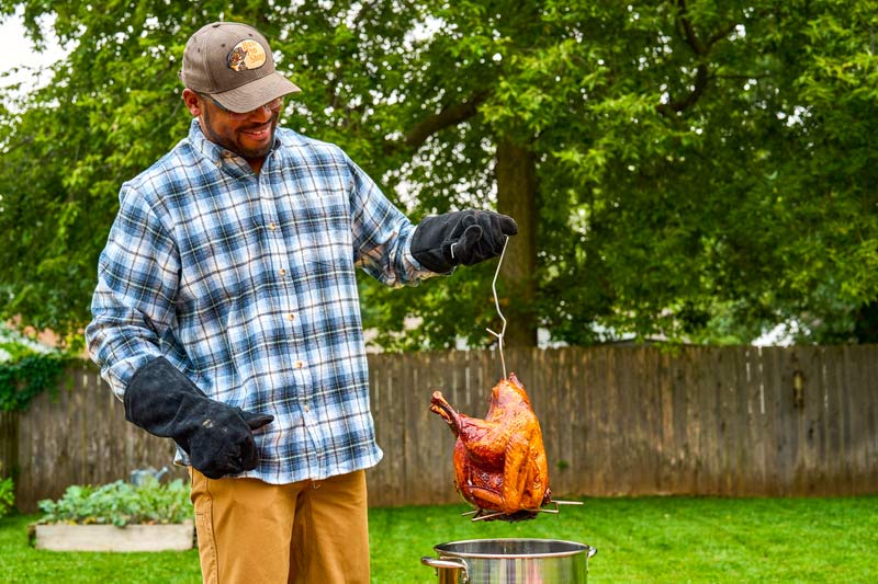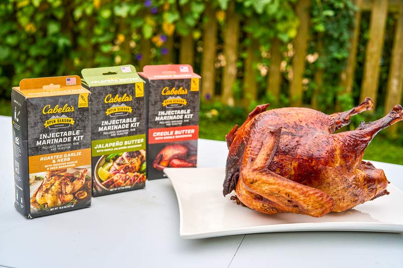 Use Cabela’s meat injectors to infuse marinades deep into the turkey, locking in moisture and rich flavor throughout the cooking process.